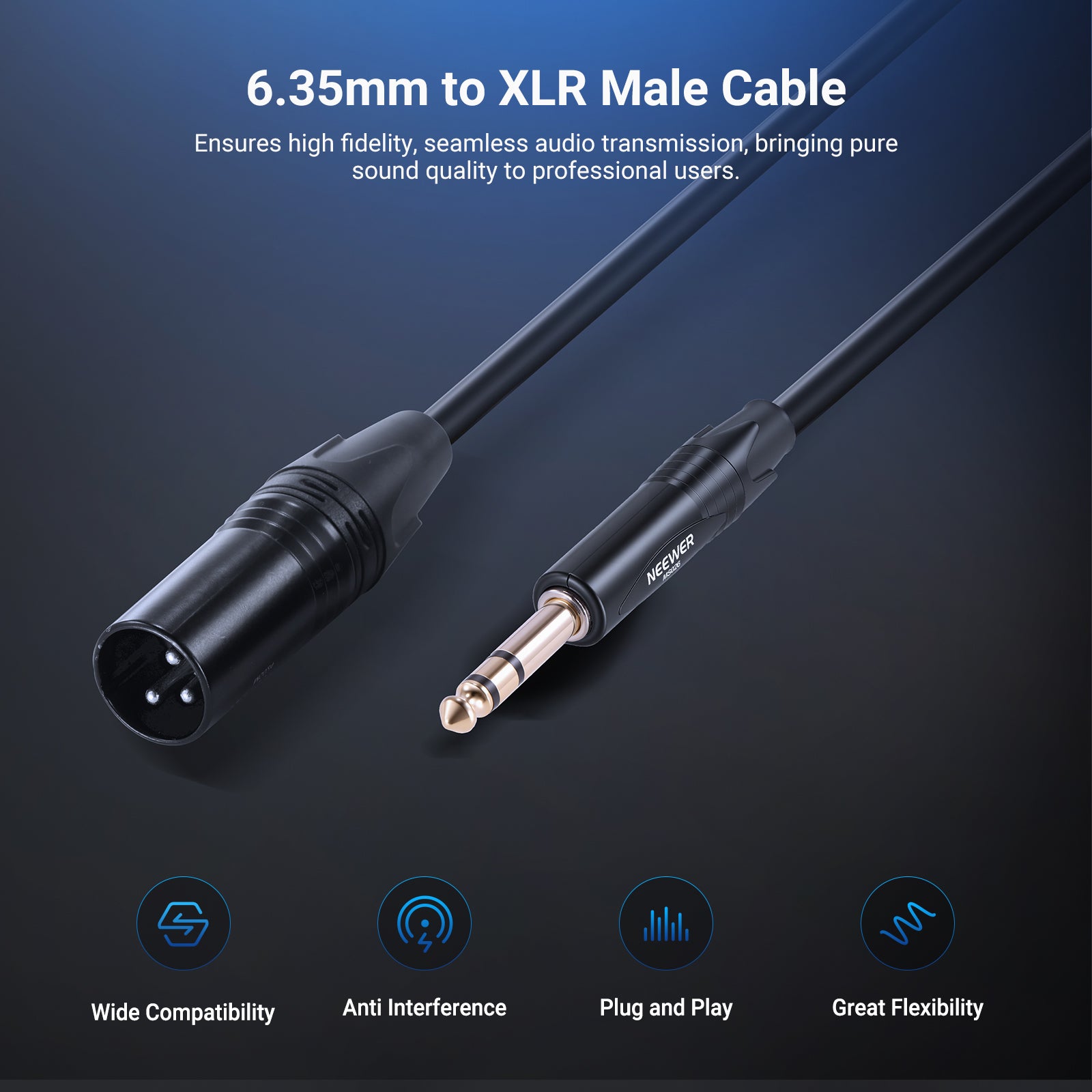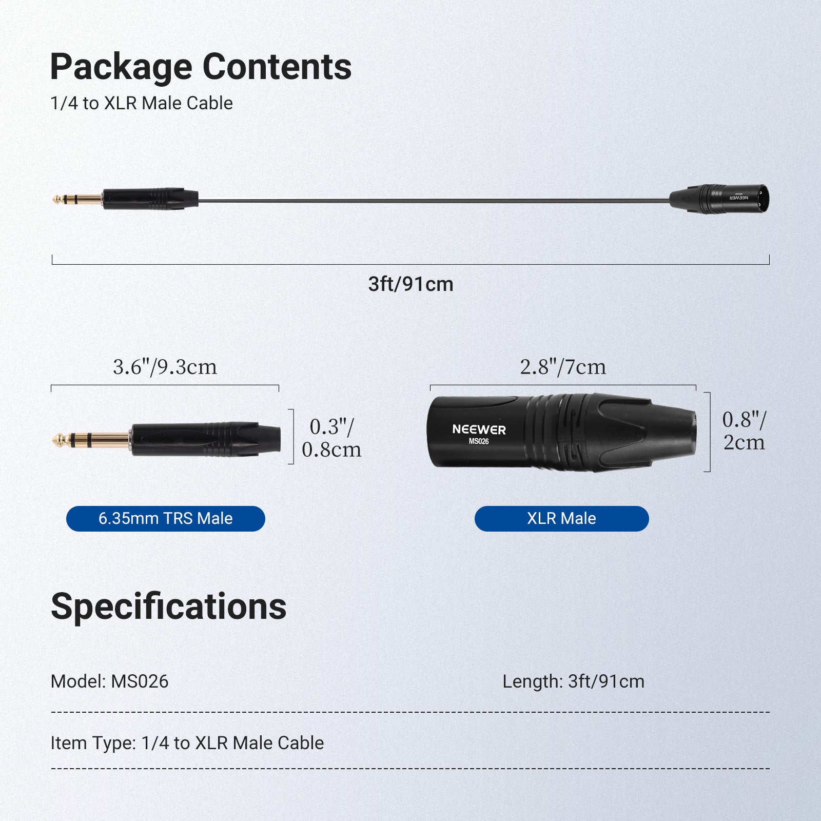 NEEWER MS026 6.35mm 1/4 TRS to XLR Male Cable