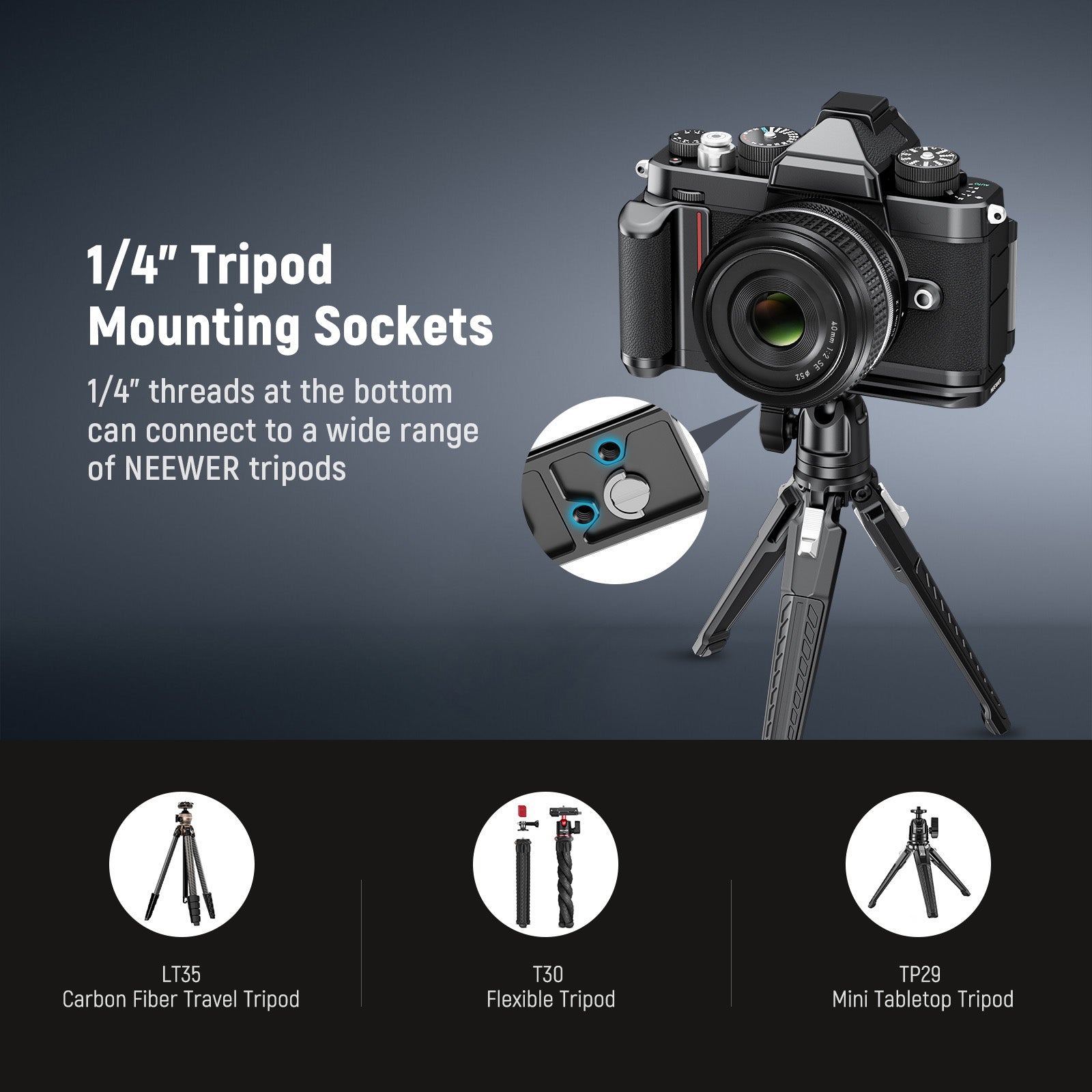 - 1/4" Tripod Mounting Sockets- 1/4" threads at the bottom can connect to a wide range of NEEWER tripods, including LT35 Carbon Fiber Travel Tripod, T30 Flexible Tripod, TP29 Mini Tabletop Tripod, and more