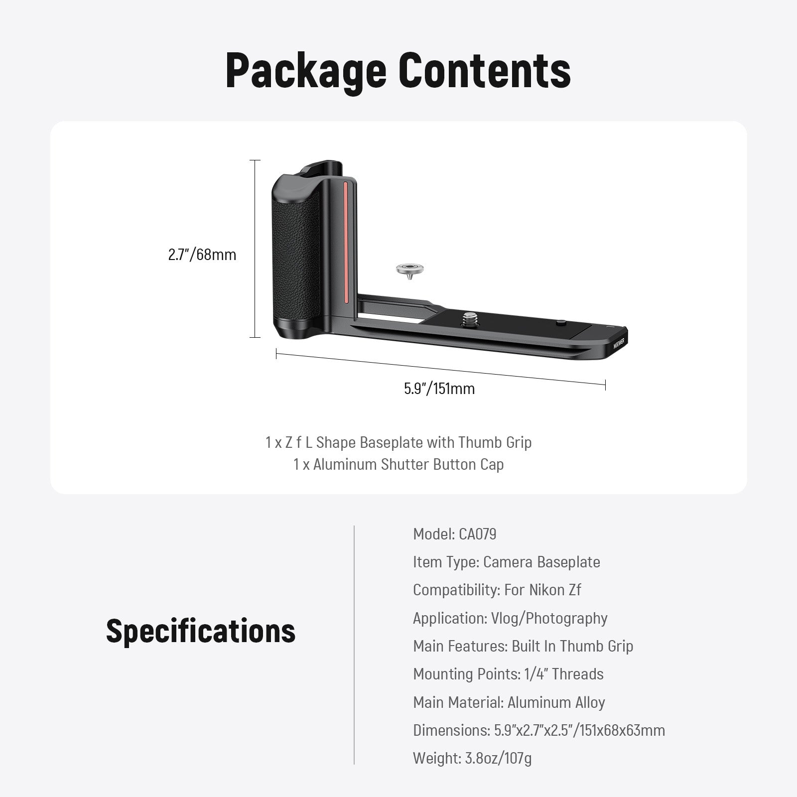 NEEWER CA079 Slim Formfitting L Shape Grip Camera Baseplate for Nikon Zf