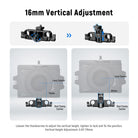 - 0.87"/22mm Vertical Adjustment- 0.87"/22mm vertical adjustment accommodates ø85-107mm camera lenses. A flat base allows the support to sit flush on the desk