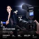 - High Guide Number & Featured TCM Function - NW700-N has GN60 high guide number to provide strong and stable light. Its sophisticated flash head is designed to give off light evenly. The featured TCM (TTL convert to Manual) function combines convenience with flexibility by using TTL to get initial metering and then converting to manual flash to fine tune the amount of light for accurate exposure