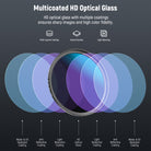 - Multicoated Optical Glass- HD optical glass with multiple coatings ensures sharp images and high color fidelity. Slim aluminum alloy frames prevent vignetting on a wide angle lens
