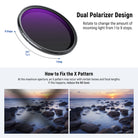 - How to Remove X Pattern- A dark X pattern (or X vignetting) may appear at the max ND value. This is common when the variable ND filter, with its two polarizing filters aligned at a specific angle, interacts with certain lenses and focal lengths. To fix it, reduce ND values