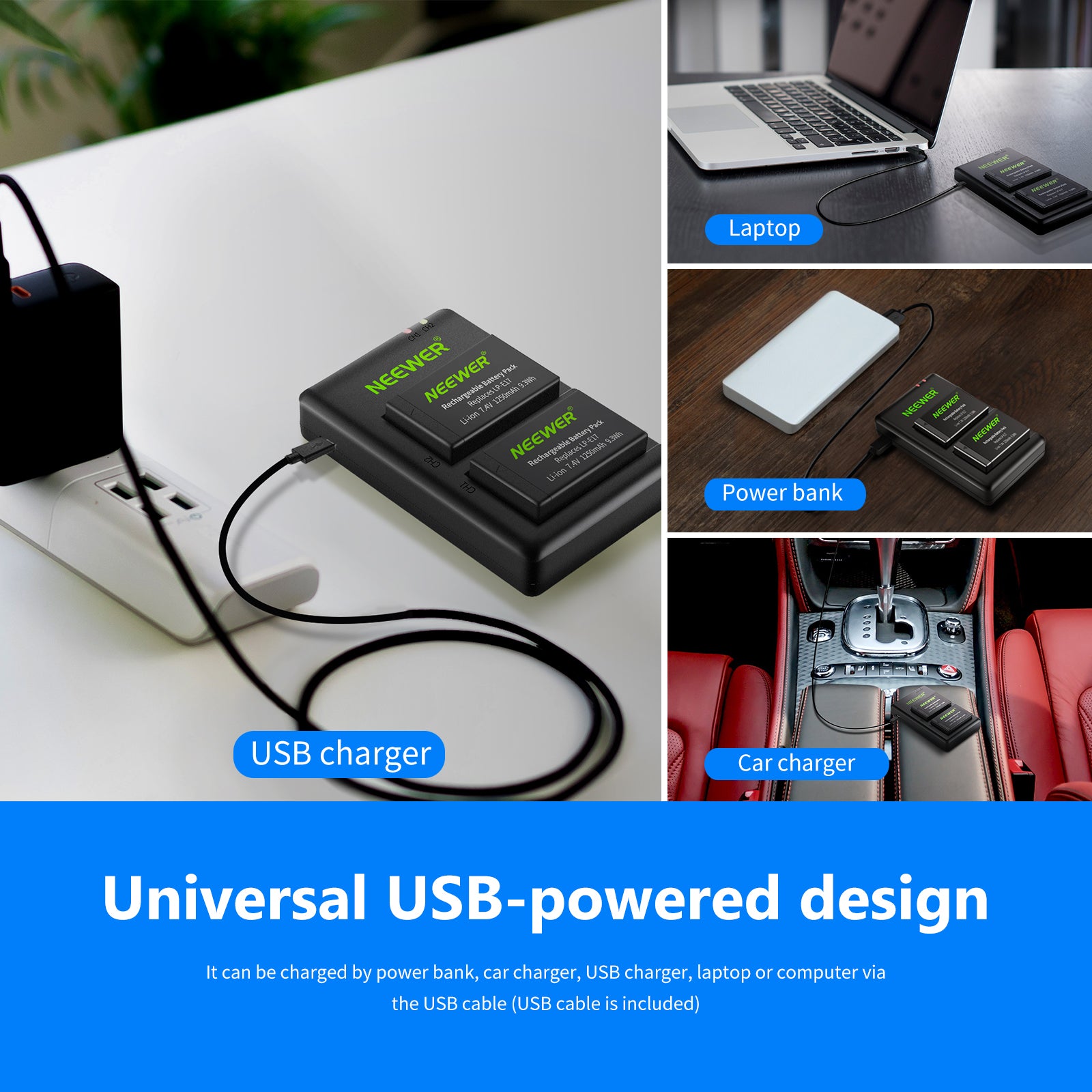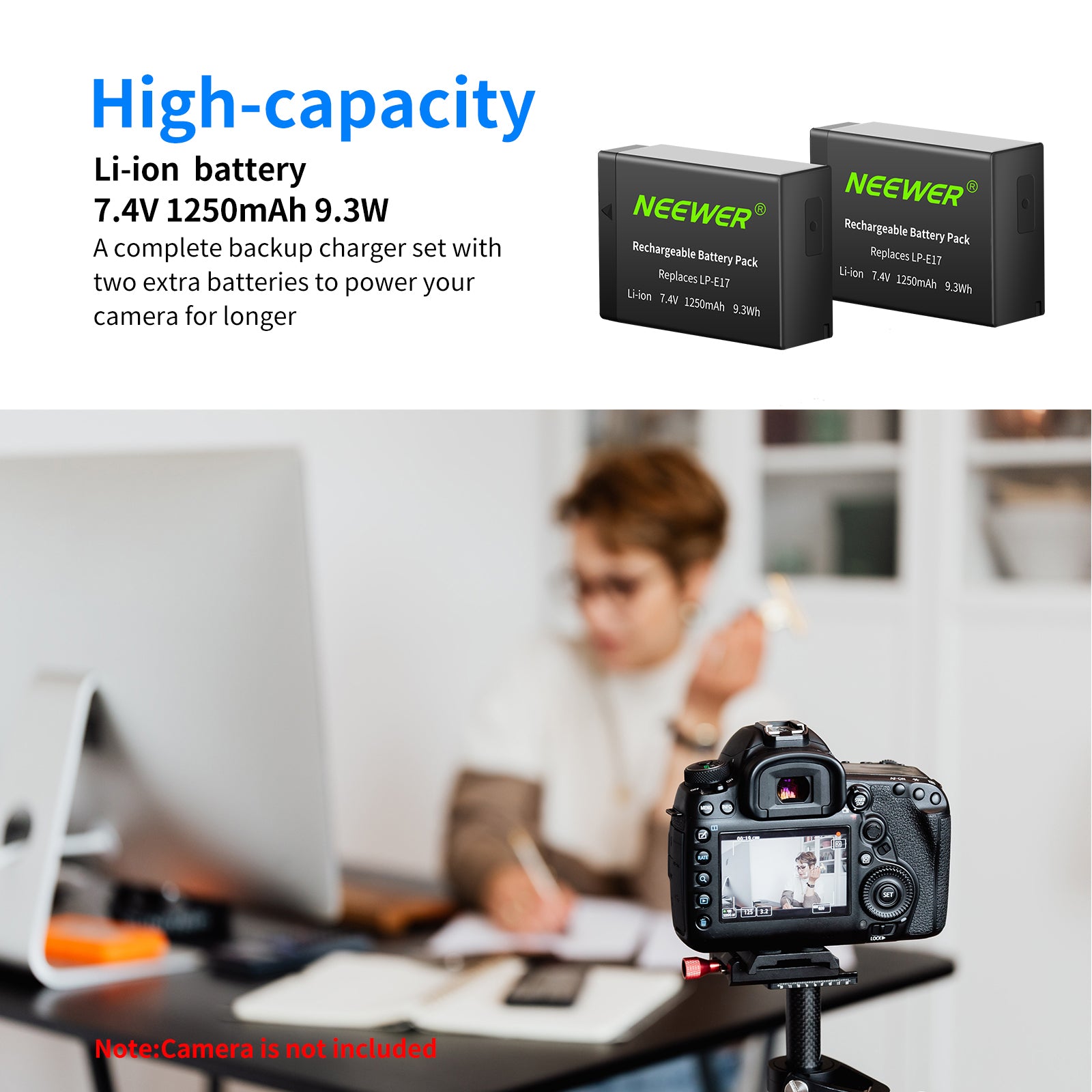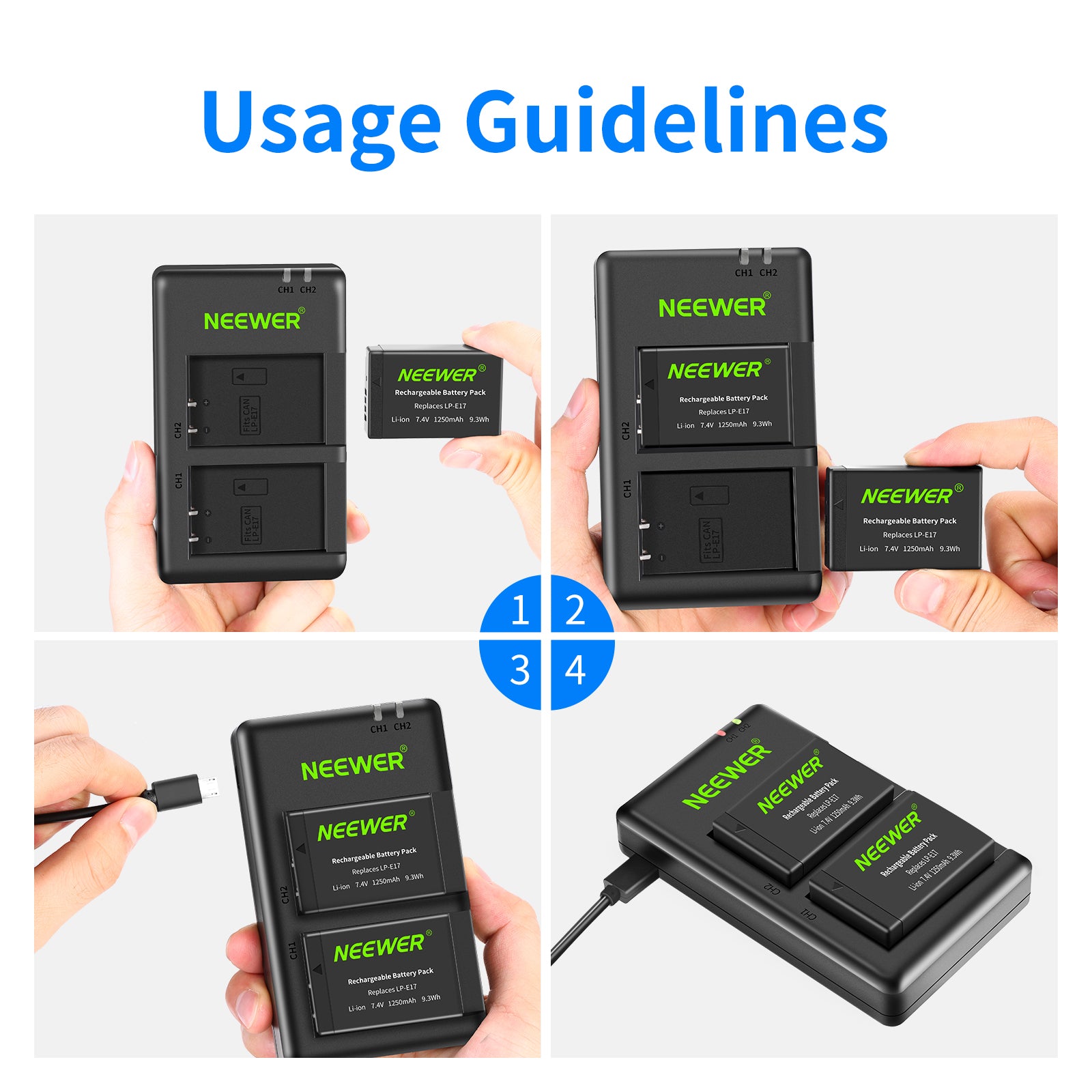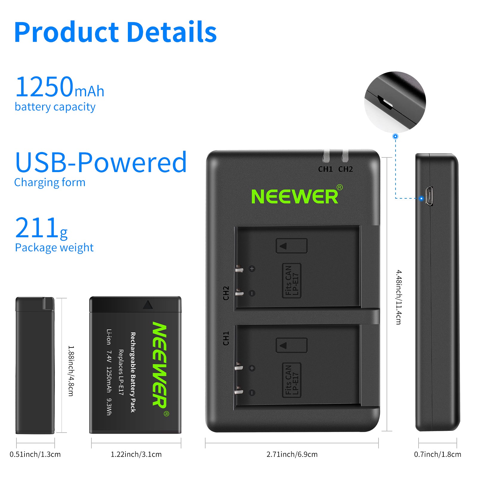 NEEWER 2-Pack LP-E17 Replacement Battery Charger Set for Canon