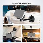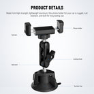 • Versatile Mounting- The strong suction cup phone holder mount holds on the windshield, window, hood, dash board, marble, smooth dashboard/metal surface, for a car, truck, van, ATV, UTV or other vehicles. A simple turn of the base knob secures it in place