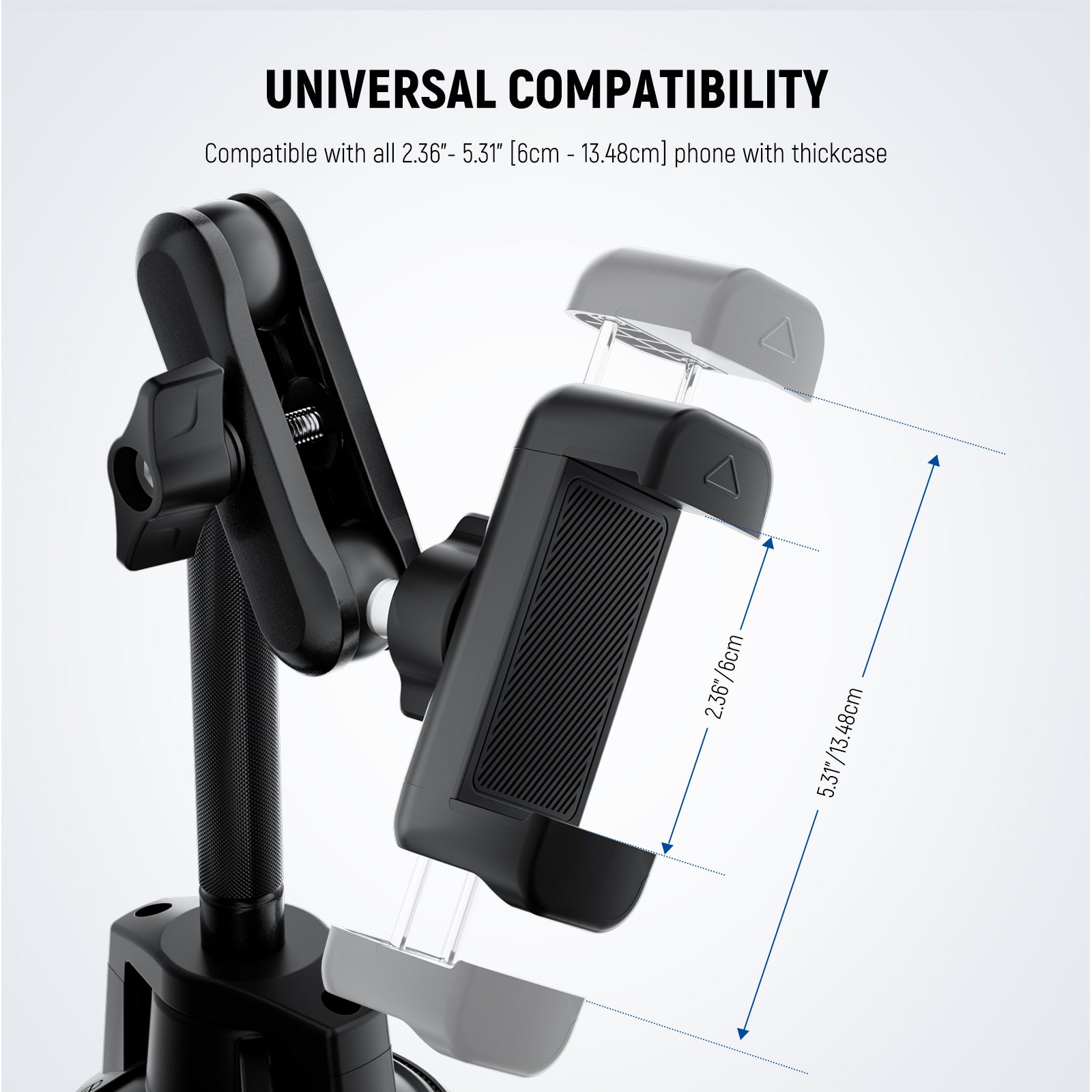 • 360° Rotation & Unobstructed View- The triple ball head system offers flexible positioning for height and angle, with quick switching between portrait and landscape modes while keeping your line of sight unobstructed. Metal knobs securely lock the joints