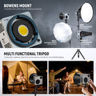 - Standard Bowens Mount & Umbrella Hole- Our portable studio video soft light has a standard Bowens mount and an umbrella mount for connecting equipment, gears, or studio accessories like softboxes, beauty dishes, snoots, and photography umbrellas to achieve various lighting effects as content creator essential and influencer must have. Plus, it includes a tripod stand mount adapter to enable 360° angle adjustment and a standard reflector to intensify the output and protect LEDs from damage