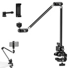 - Enhanced Stability & Flexibility- Upgraded with the gear connection design, the metal build articulating magic arm with phone holder stably holds a camera, webcam, or phone (max load 2.2lb/1kg) overhead, with a super C clamp and three pivot points for secure mounting and ultimate stability. The multiple ball head structure allows for flexible positioning, and the integrated design requires no assembly, ready to use out of the box as content creator creation essential and influencer must have