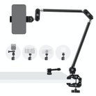 • 360° Dual Ball Heads & 30"/75cm Extended Reach- With a 30"/75cm two section articulating arm and 360° dual ball heads, this camera desk mount allows flexible adjustment with independent locking knobs, ideal desktop rig accessories as table low profile boom arm stand for microphone (mic) podcast, for YouTube TikTok video recording, overhead vlogging, gaming streaming, Zoom calls conferencing, etc. Note: The super clamp and magic arm are permanently attached and cannot be used separately