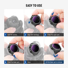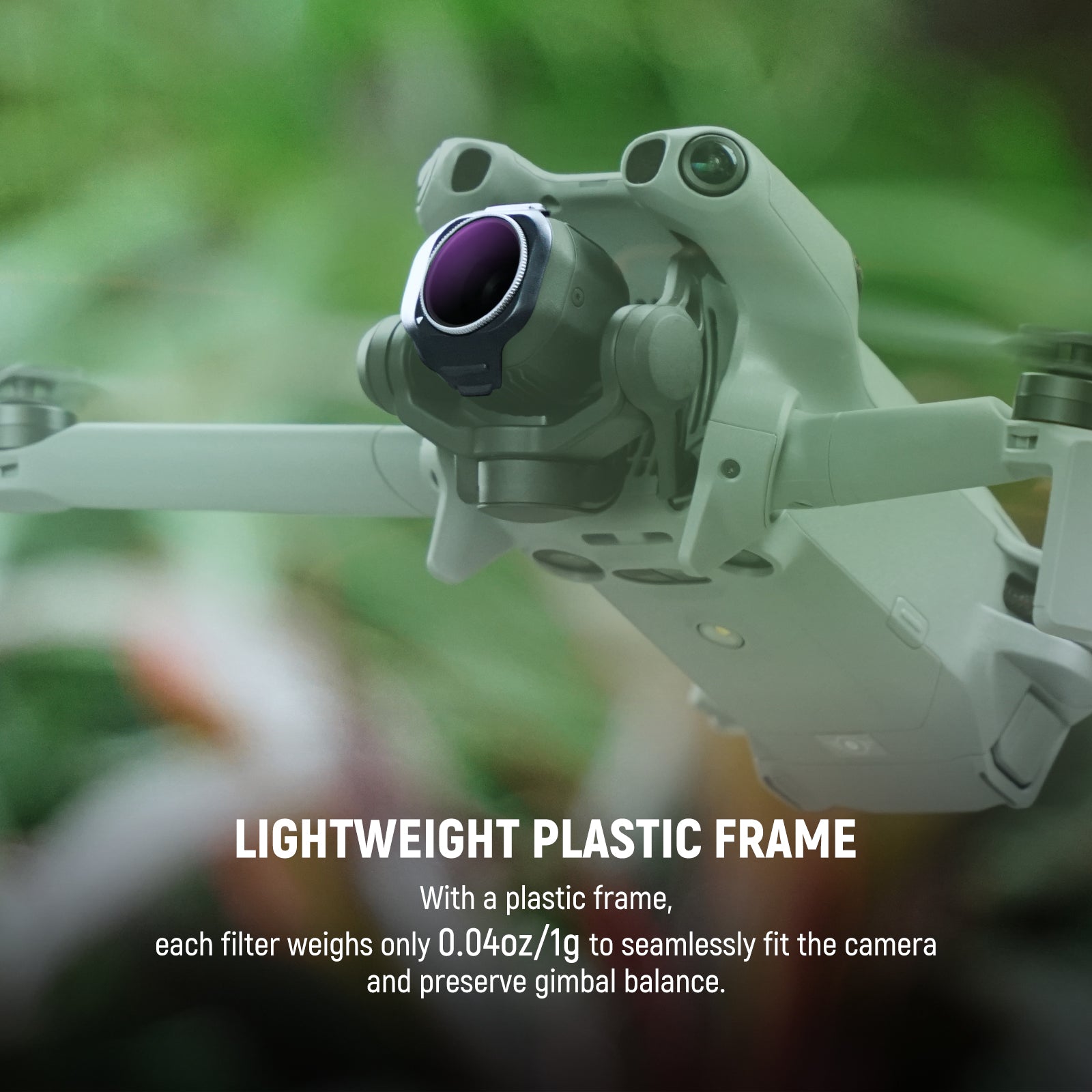 • Quick Snap On Attachment- Hold the camera, align, and snap the filter on from top to bottom until it locks in place. The 0.04oz/1g lightweight frame preserves gimbal balance and accuracy