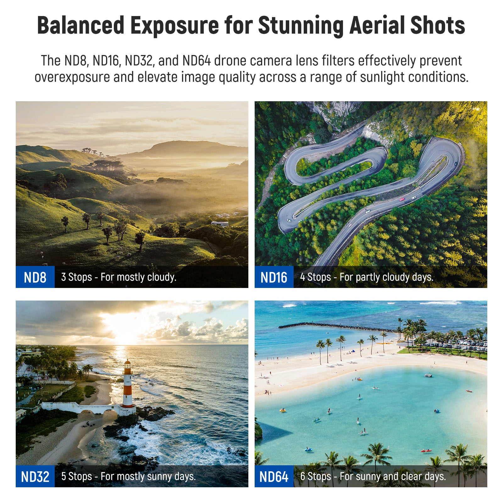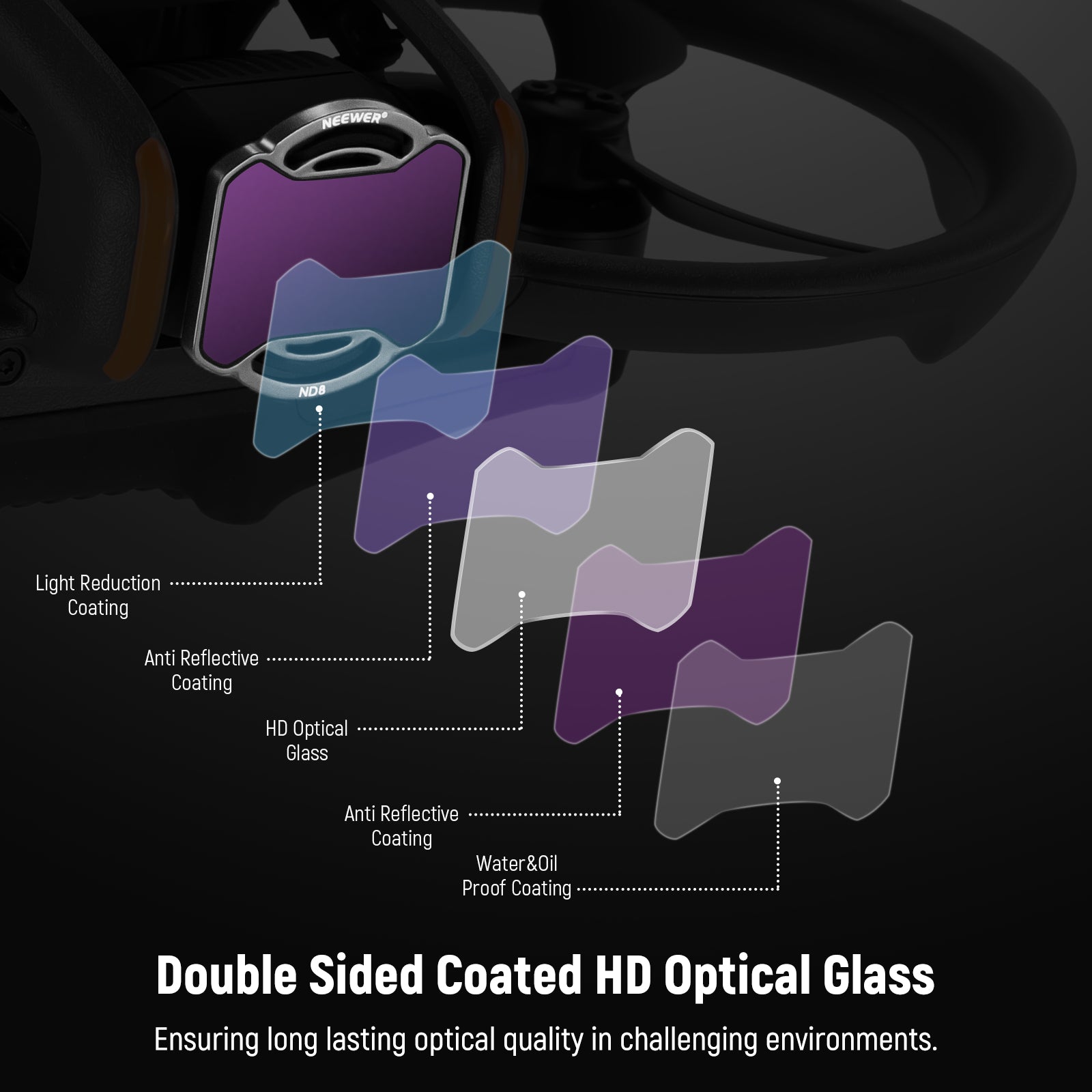 NEEWER offers DJI lens filters that are ideal for professional aerial photography and videography. With the help of these DJI camera filters, you can capture sharp photos in bright lighting and create motion blur in dynamic scenes. Choose a DJI lens filter that is compatible with your action camera model.