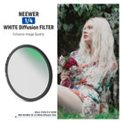 Product overview of the NEEWER 58mm 1/4 Soft White Diffusion Filter