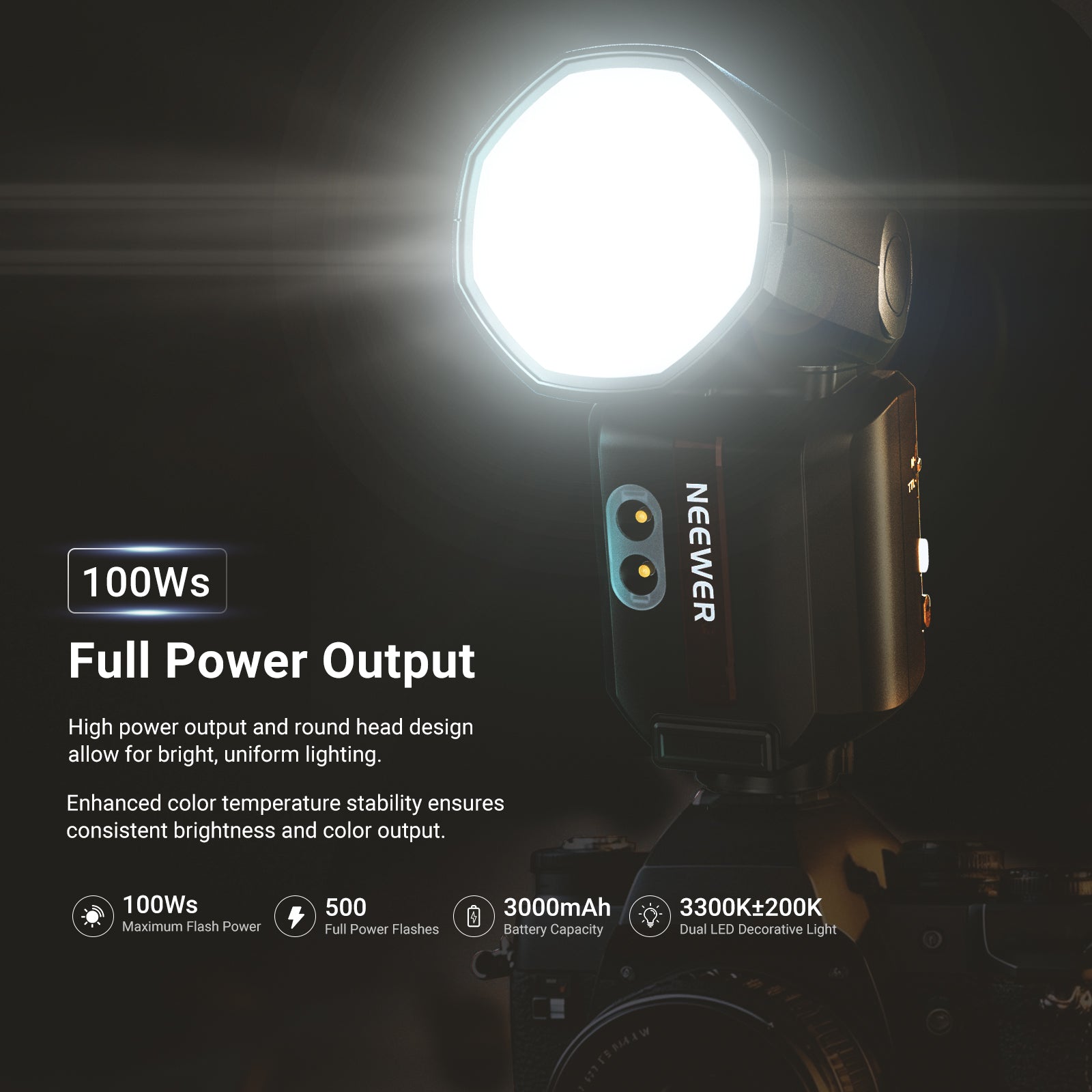 - Burst Performance: 70-100 Flashes (at Full Power)