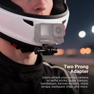 - Two Prong Adapter- With a two prong adapter, the action camera mount is for tripods, selfie sticks, super clamps, bicycle handlebars, helmet mounts, chest straps, backpack clips, and more with a 3 prong mount and locking screw (all not included)