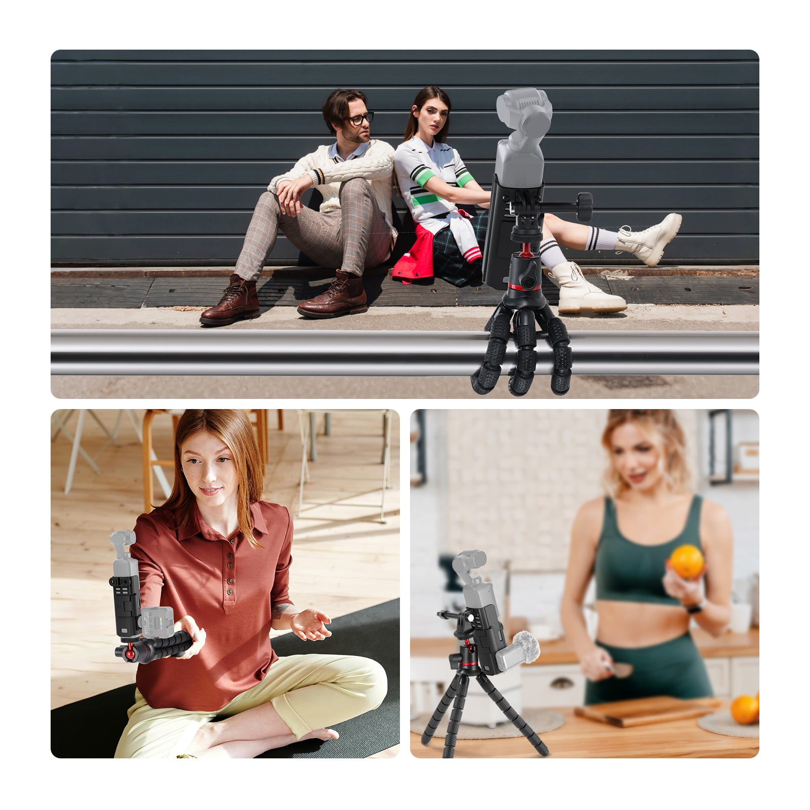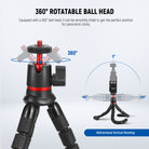 - Flexible Mini Tripod with Ball Head- The ball head offers 360° swivel adjustment, enabling effortless switching between landscape and portrait modes. Beyond handheld shooting, the tripod stand with bendable legs can securely stand on flat surfaces or wrap around poles and branches, allowing for easy video recording and photography from dynamic angles.