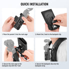 - Quick Installation- The backpack clip features a touch fastener design for effortless attachment to your backpack strap and quick release. Simply place your Pocket 3 into the camera bracket cage, then secure it onto the backpack clip using the J hook buckle mount and T bolt. The buckle mount allows for tilting up and down for versatile shooting angles