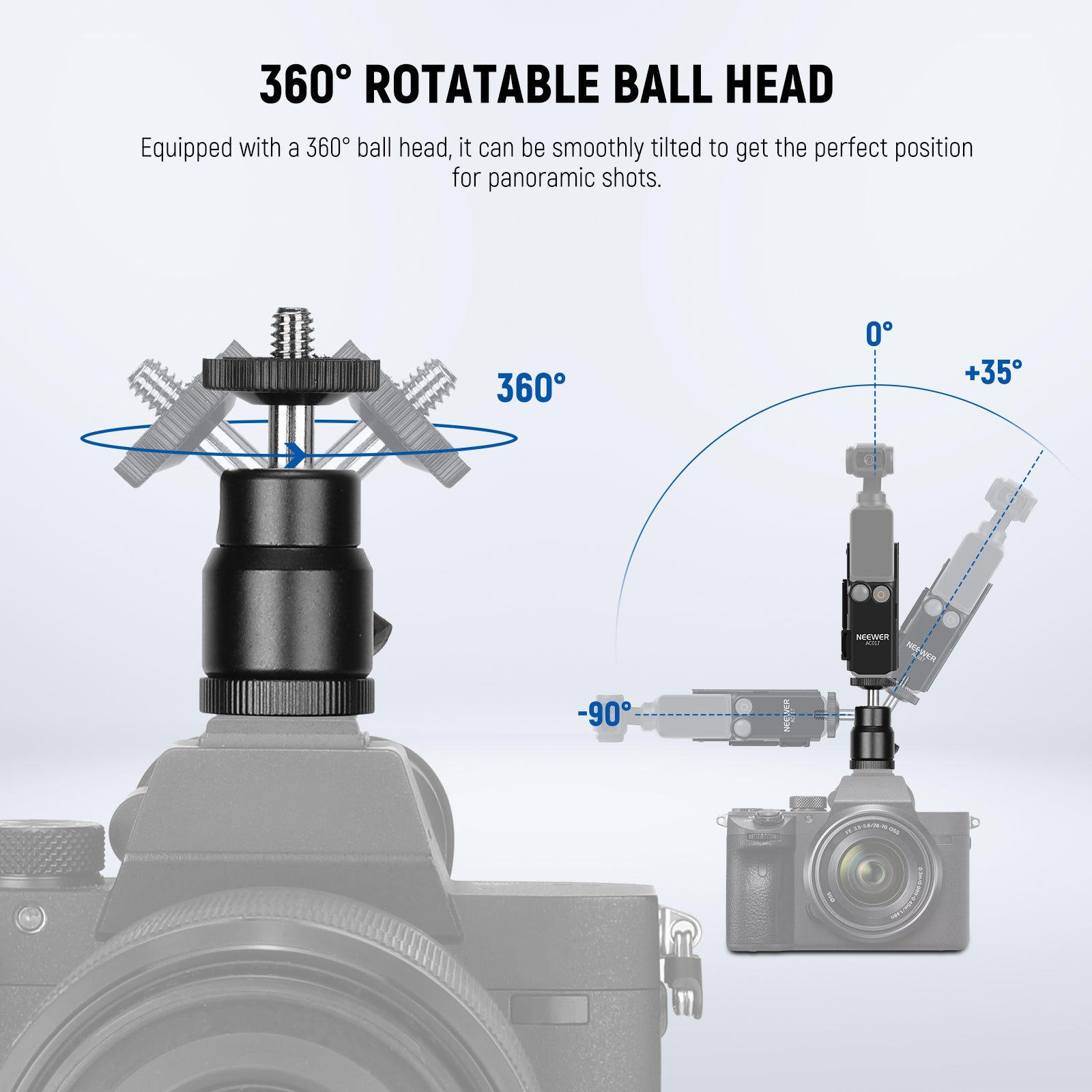 - Flexible Accessory Expansion- The cold shoe ball head with a 1/4" screw offers a secure yet flexible solution for mounting an LED video light or external display onto a DSLR, digital camera, vlog camera, or other hot shoe equipped cameras. The accessory mount allows for 360° rotation, enabling flexible shooting angles. Besides, the cold shoe on the Pocket 3 extension mount facilitates the attachment of a microphone, compact LED light, other other photography accessories
