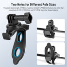 - Diverse Mounting Options- The elastic band (length: 3.1"/7.8 cm, maximum stretch: 8.7"/22cm) features two holes that respectively fit 0.9"-1.3"/22-32mm and 1.3"-1.8"/32-45mm bar shaped objects, making this mount adapter compatible with GoPro Hero Go Pro cams accommodate poles, bike handlebars, railings, fishing rods, roll bars, treadmill, fitness equipment, selfie sticks, extension poles and more. Note: For light activities like shooting still, not for intense sports like mountain biking