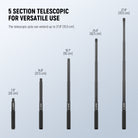 - 5' Telescopic for Versatile Use- The telescopic pole can extend up to 60.5" (151 cm), allowing for diverse perspectives for capturing group photos, landscapes, vlogs, travel videos, or events like weddings and concerts, ideal as content creator essential and influencer must have. When using your action camera in panoramic mode, the rod will not obstruct the view for more immersive and captivating results