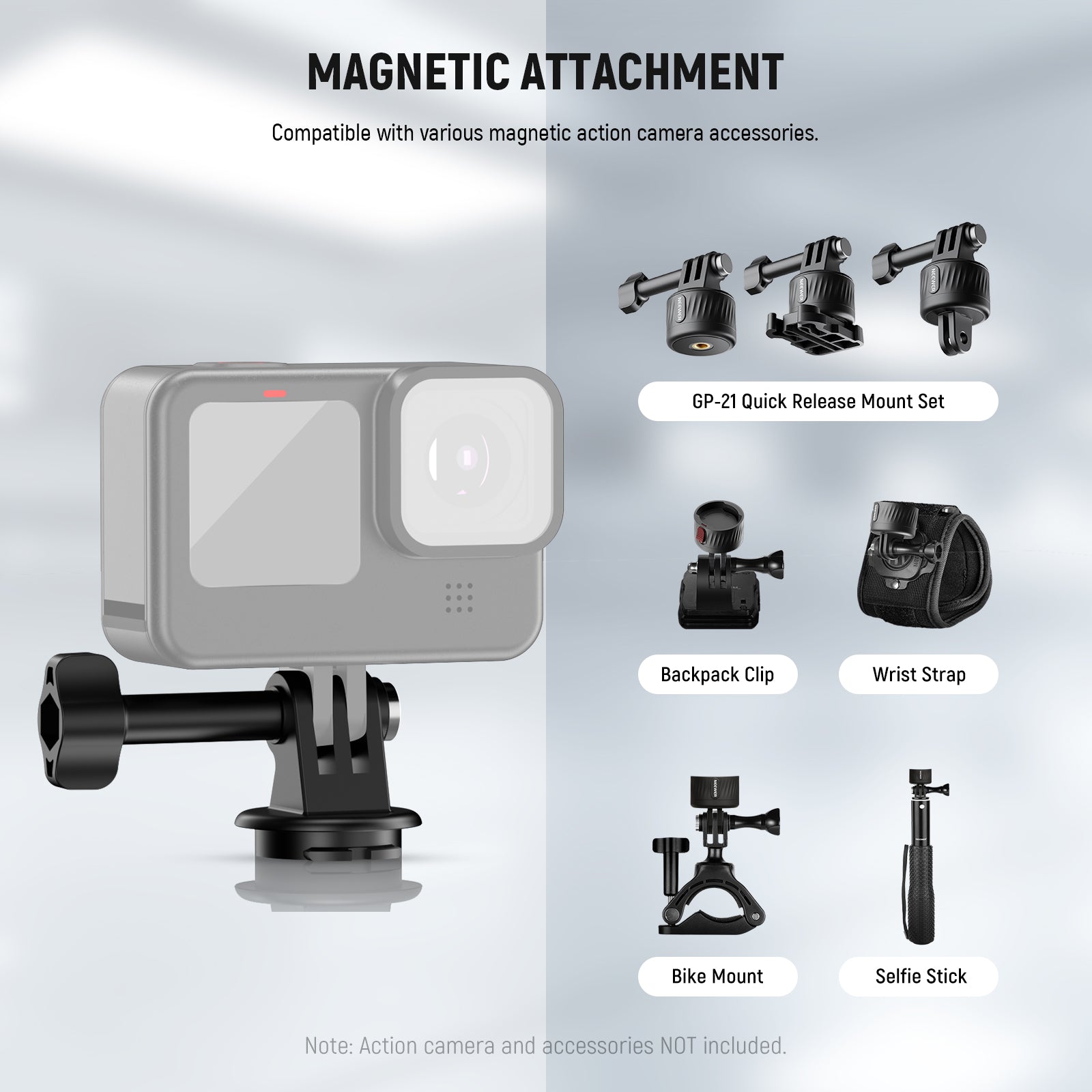 NEEWER GP39 Magnetic Action Camera Neck Mount with Pocket 3 Cage