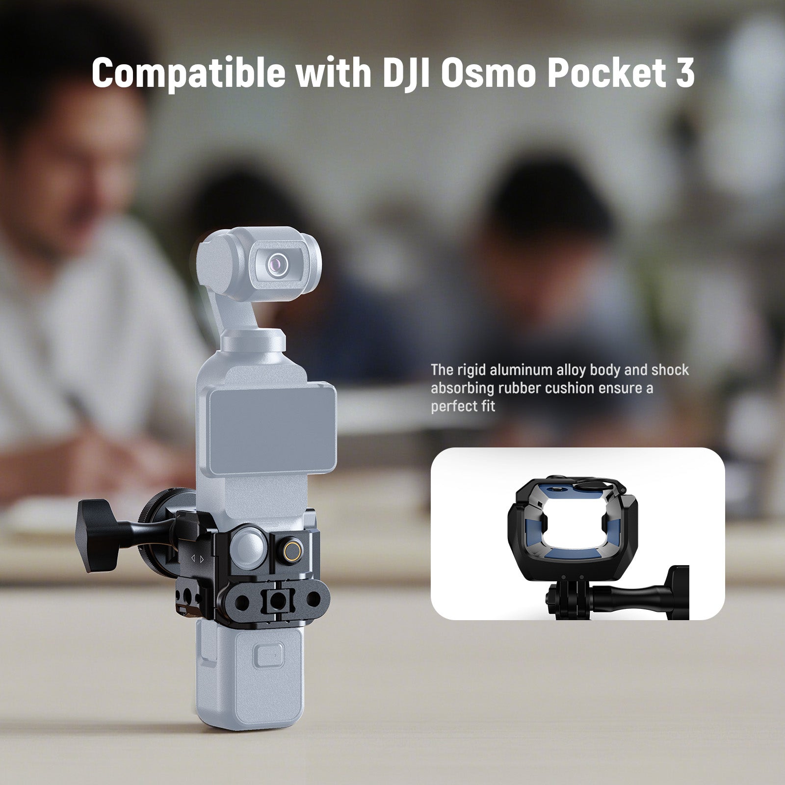 - Compatible with DJI Osmo Pocket 3- Compatible with DJI Osmo Pocket 3 Creator Combo accessories, this aluminum alloy cage mount, with damping rubber coating, perfectly fits the camera with stabilizer and protects it during daily use. Note: Please remove the wrist strap before use.