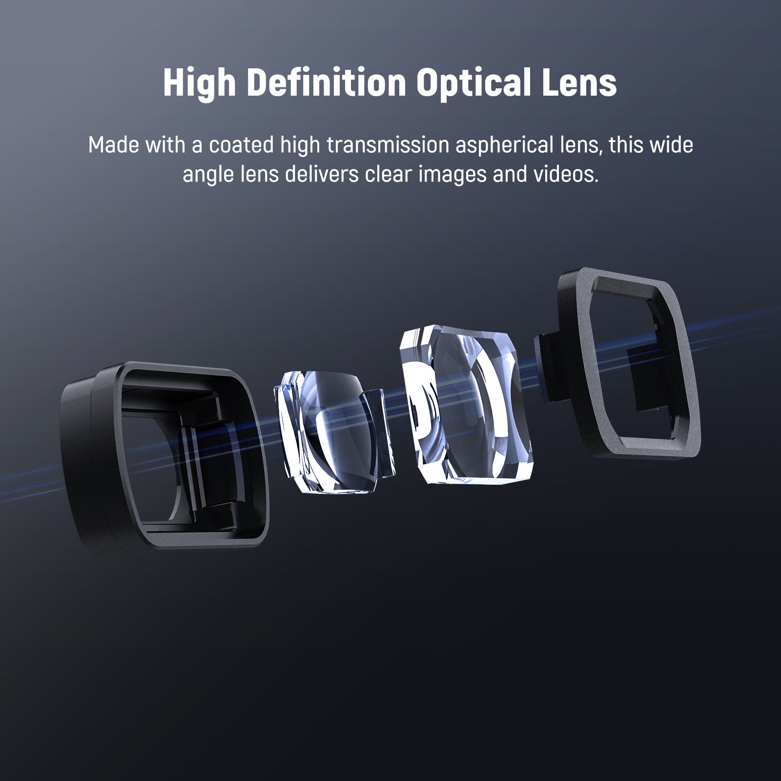 - High Definition & Lightweight- Made with a coated high transmission aspherical lens, this wide angle lens delivers clear images and videos while remaining lightweight at 0.1oz (3.9g)