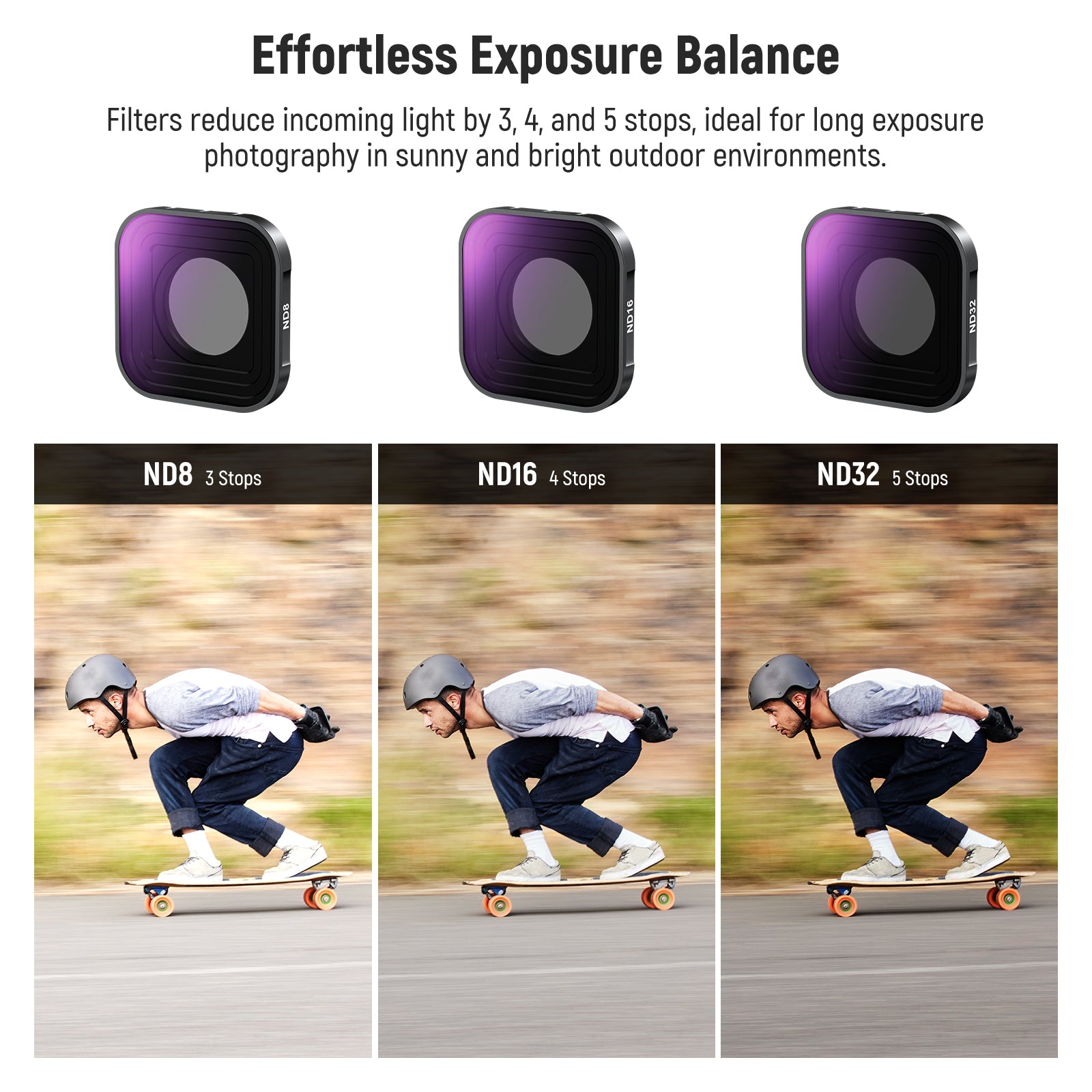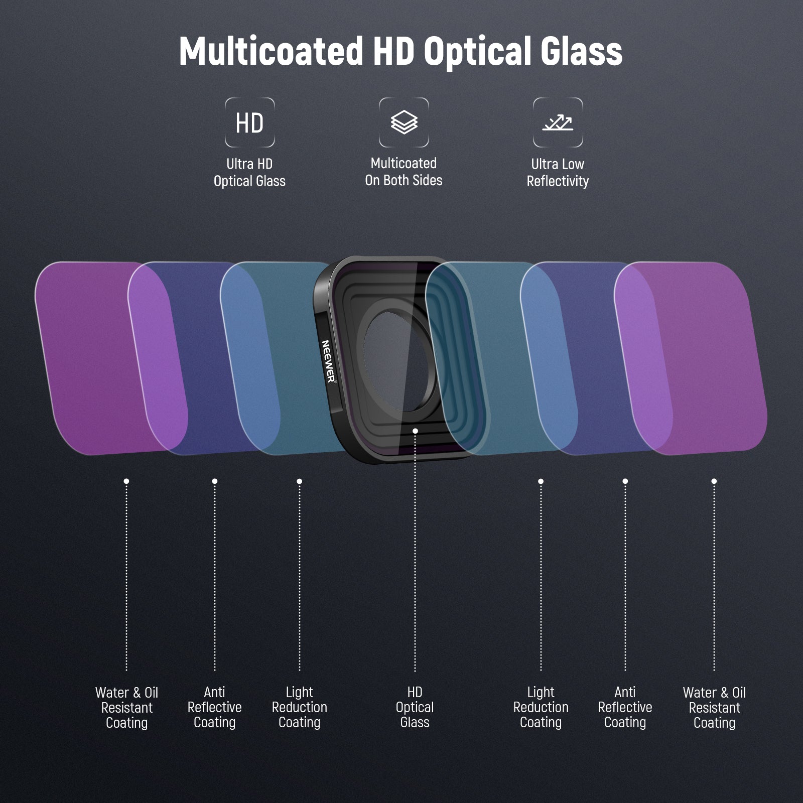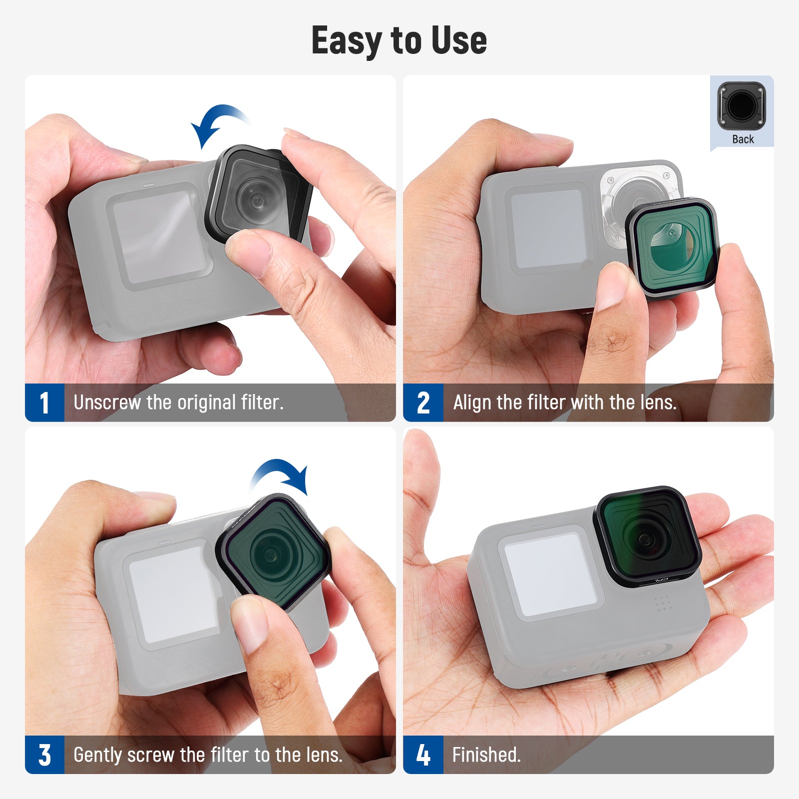 NEEWER offers GoPro filters designed to help you easily manage various outdoor lighting conditions. Our collection includes GoPro ND filters, GoPro CPL filters, anamorphic lenses, macro lenses, and more. These GoPro filters quickly thread onto the camera and stay firmly in place during any sports activity, whether it is surfing, hiking, mountain climbing, or biking.