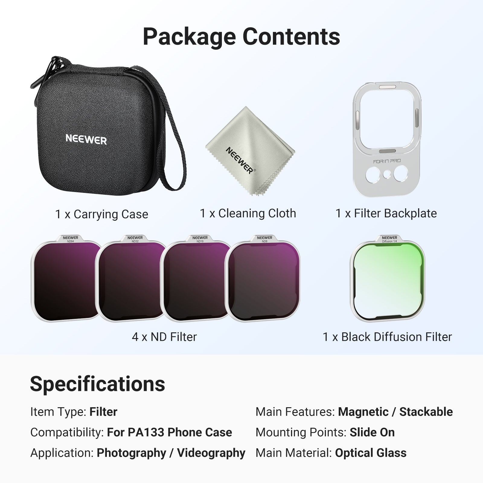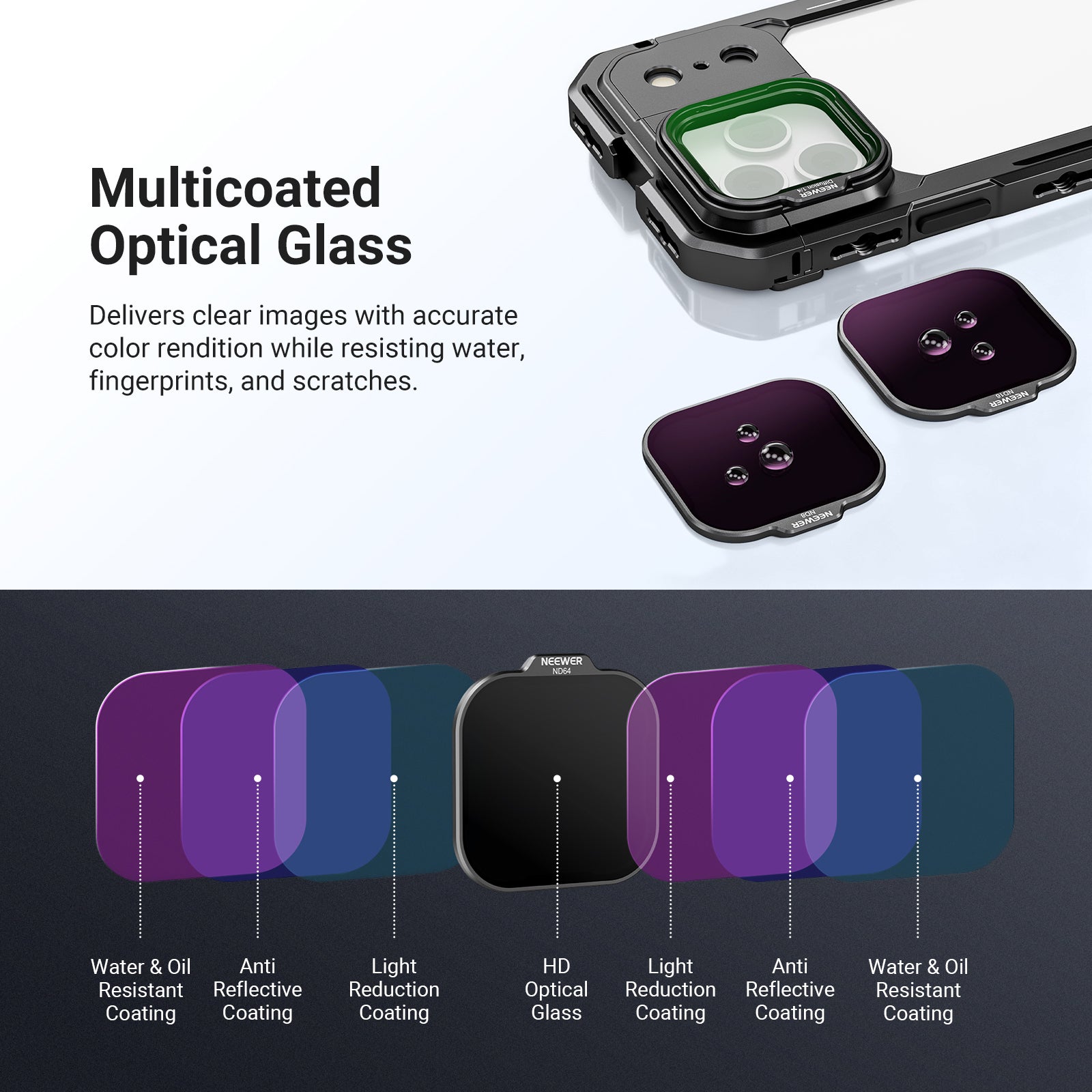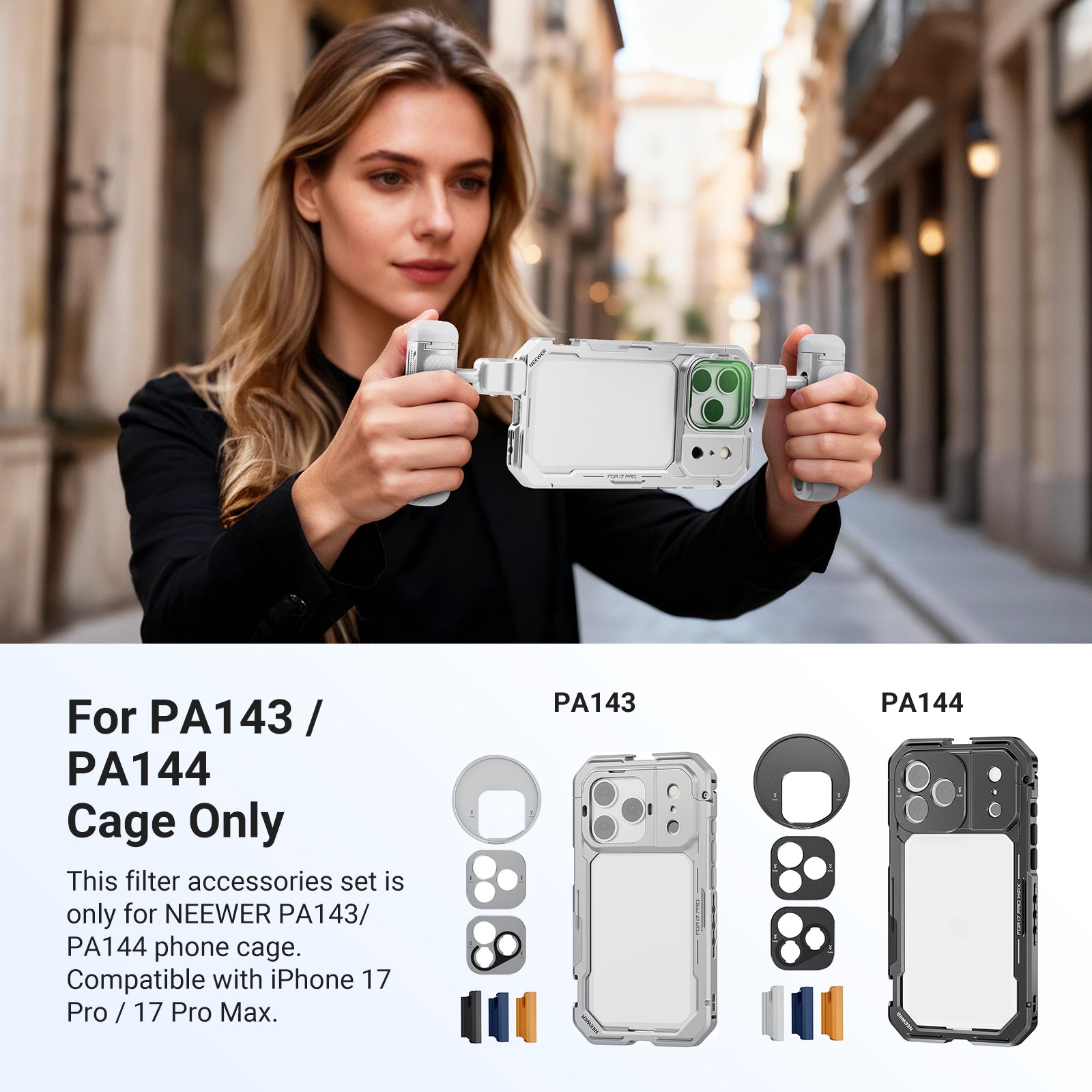 NEEWER offers a range of iPhone camera accessories, including iPhone cages, lenses, filters, tripods, and more. These iPhone camera attachments are designed to enhance your phone photography performance. Whether you're looking to improve stability while shooting or capture vivid, lifelike colors, you'll find the perfect iPhone camera accessories to meet your needs.