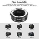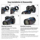 - Complete Functions Retained- Electrical contacts maintain fast speed autofocus, auto aperture control, image stabilization, and other functions on your lens while transferring EXIF data to your camera