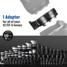 Note: 1) The adapter does not support AF-C in video mode. 2) A lens support bracket is necessary if using a lens over 4.4lb/2kg
