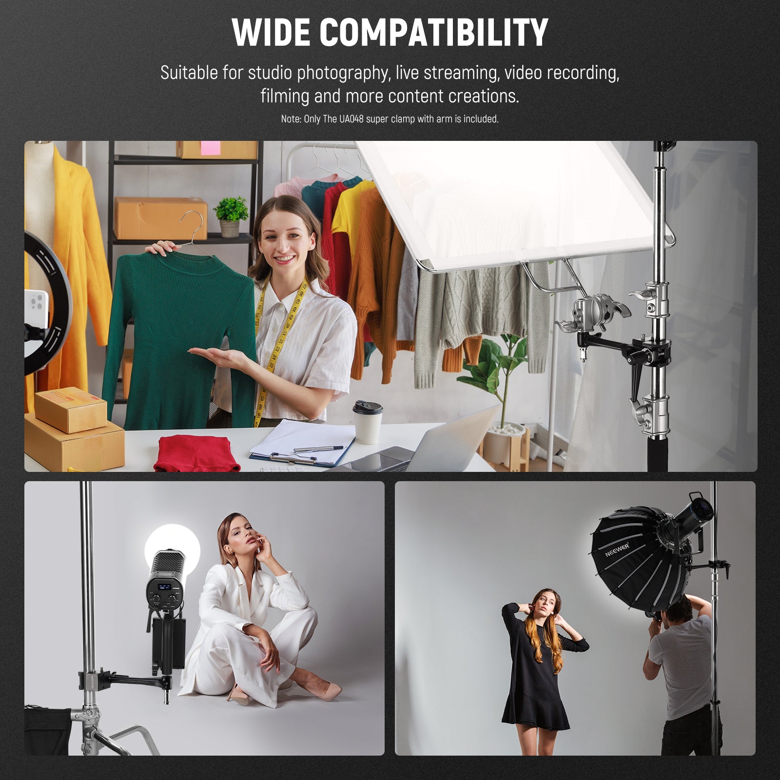 NEEWER offers a range of light stands and light stand accessories, including photography sandbags, grip heads, and more. Photography sandbags are useful in the studio to help stabilize your lighting equipment. The grip arm with grip head is fit for a light stand, flag, reflector, and other equipment. Choose perfect light stand accessories to elevate your photography to the next level.