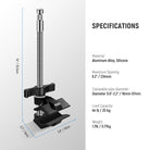 - Sturdy & Durable- The robust stainless steel shaft and aluminum alloy jaw is built to withstand heavy-duty use and can securely support heavier lights or other accessories