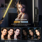- Pro Studio Lighting Kit- Includes 2 RGB tube lights, 2 light stands, 2 diffusers, 2 power cords, and 2 power adapters. The 21W light sticks are integrated with 360 premium LEDs, delivering a max illuminance of 3250lux at 0.5m (5600K). They offer an extensive color temperature range from 2500K to 10000K with an adjustable brightness of 0-100%, creating the perfect ambiance for any setting. The white diffusers soften the light and reduce shadows to enhance your photography results