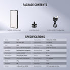 - Full Color Camera Light with CCT/HSI/FX- Featuring 45 warm, 45 cool, and 48 RGB LED blended, this on camera light delivers up to 984lux/0.5m with 3 lighting modes: CCT/HSI/FX. In CCT mode, it offers color temperature range from 2700K-7500K with stepless brightness control from 0-100%. HSI mode enables full spectrum color output with 360° H selection for rich, customizable tones, while FX mode provides 17 dynamic scene effects that simulate real world scenarios to enhance visual storytelling