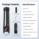 • Travel Tripod for Camera- The cell phone holder mount tripod stand compatible with iPhone weighs 2.9 lbs, reversely folds to 17", and transforms into a monopod for video recording and content creation, with a weight hook and non slip rubber feet