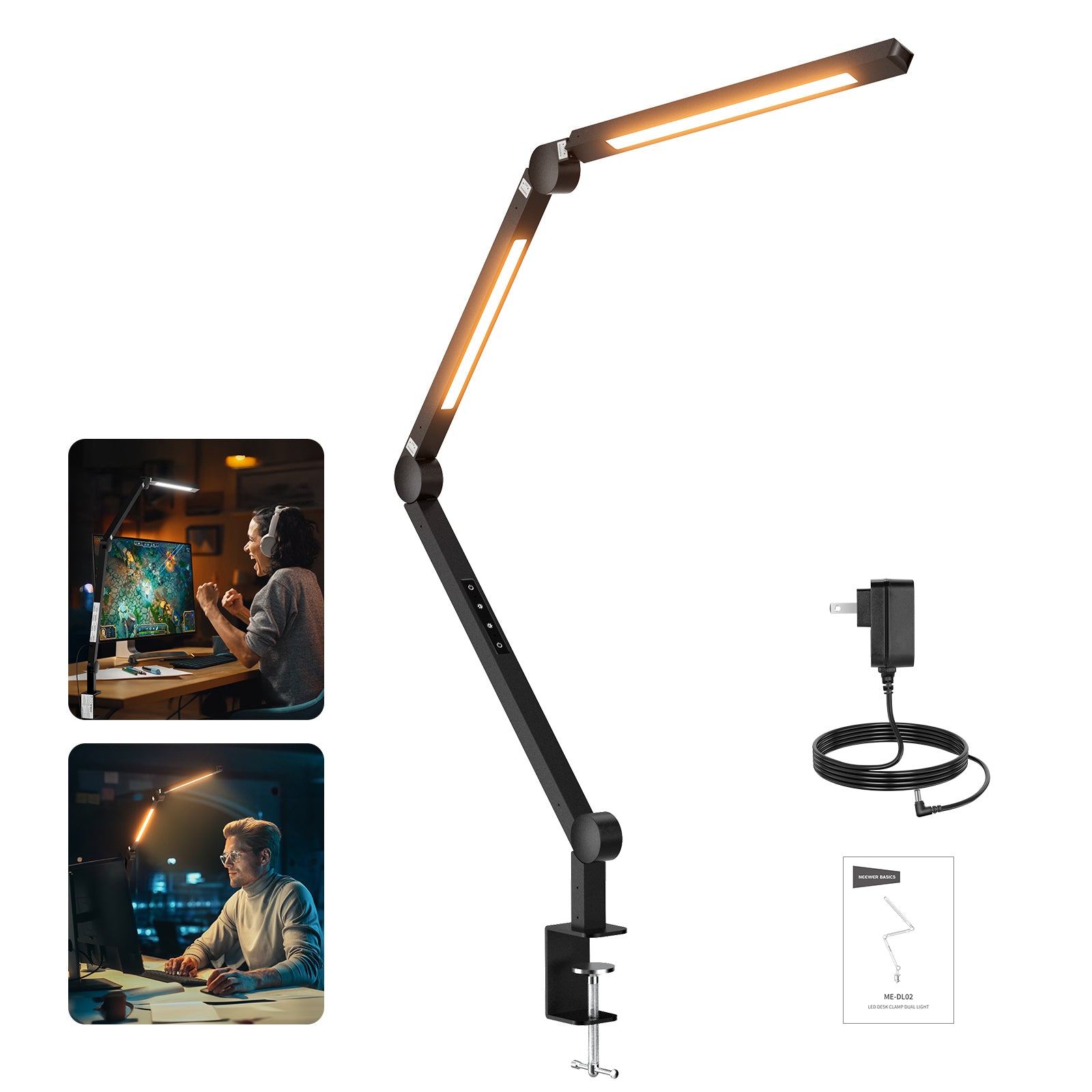 • Dual Light Bars with 42.5" Length- As essential and cool lighting accessories, NEEWER desktop LED lamp for home office deliver broad, even, and bright overhead illumination up to 1150lux/0.5m. Takes up small desk spaces over computer monitor laptop for video calls, architects designing, work from home, study at college dorm room, workbench drafting, etc.