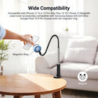 - Magnetic Phone Holder Stand with Flexible Arm- The cell phone holder stand for desk magnetically attaches your smartphone to the desk, and features a flexible arm and a 360 degree rotating ball head for easy positioning