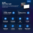- Portable Metal Camera Light for On the Go- Made of lightweight yet robust aluminum alloy, the SL90C is a portable LED RGB camera selfie soft continuous light designed for flexible use in a wide range of photography and videography lighting scenarios. Measuring just 5.9"x3.1"x0.5"/15x8x1.2cm and weighing only 8.3oz/235g, it easily slips into your pocket for effortless transport