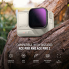 - For Ace Pro and Ace Pro 2- This 4-pack filter set (adjustable CPL + UV + black diffusion 1/4 + ND16) is compatible with Insta360 Ace Pro & Ace Pro 2. Each directly snaps onto the lens and stays in place via the rubber seal. Multiple coatings resist water, fingerprints, and scratches. Note: Not for underwater use, as water will enter and degrade image quality