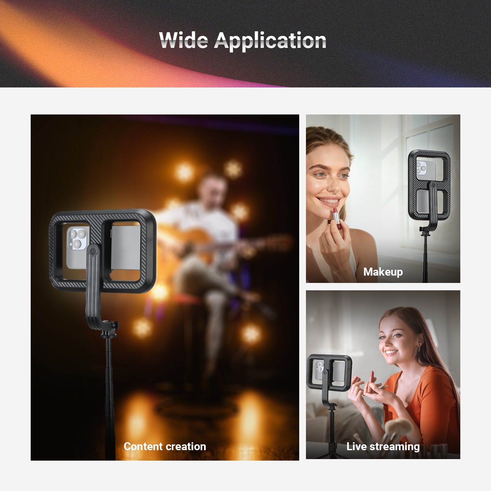 - Adjustable Lighting- With 72 warm & cool LEDs, the portable soft ring light with phone holder compatible with iPhone offers 3 CCT modes with 3 dimming levels to flatter all skin tones. CRI90 ensures accurate colors for selfies, podcast, makeup artists, esthetician lash extension, etc.