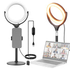 - Flexible Positioning- The ring light with selfie phone holder and desk stand extends up to 28" in height and rotates 360° back and forth. Ideal lighting for computer monitor webcam laptop zoom meetings, video conferencing, home office video calls, FaceTime, podcast, makeup artists, selfie, etc.