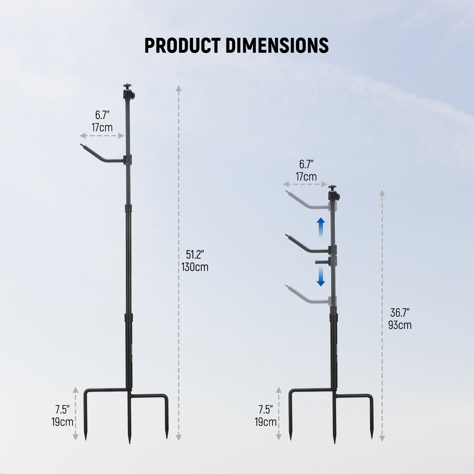 - 360° Ball Head & Height Adjustable- The trail camera stand features a 360° ball head on the main pole, allowing for 360 degree rotation and a 90 degree tilt. Use one or two connecting rods on the main pole to adjust its height to 27.6"/70 cm or 51.2"/130 cm. Elevating the camera off the ground reduces obstructions like tall grass or brush, enhancing the field of view and increasing the chances of capturing clear images or videos