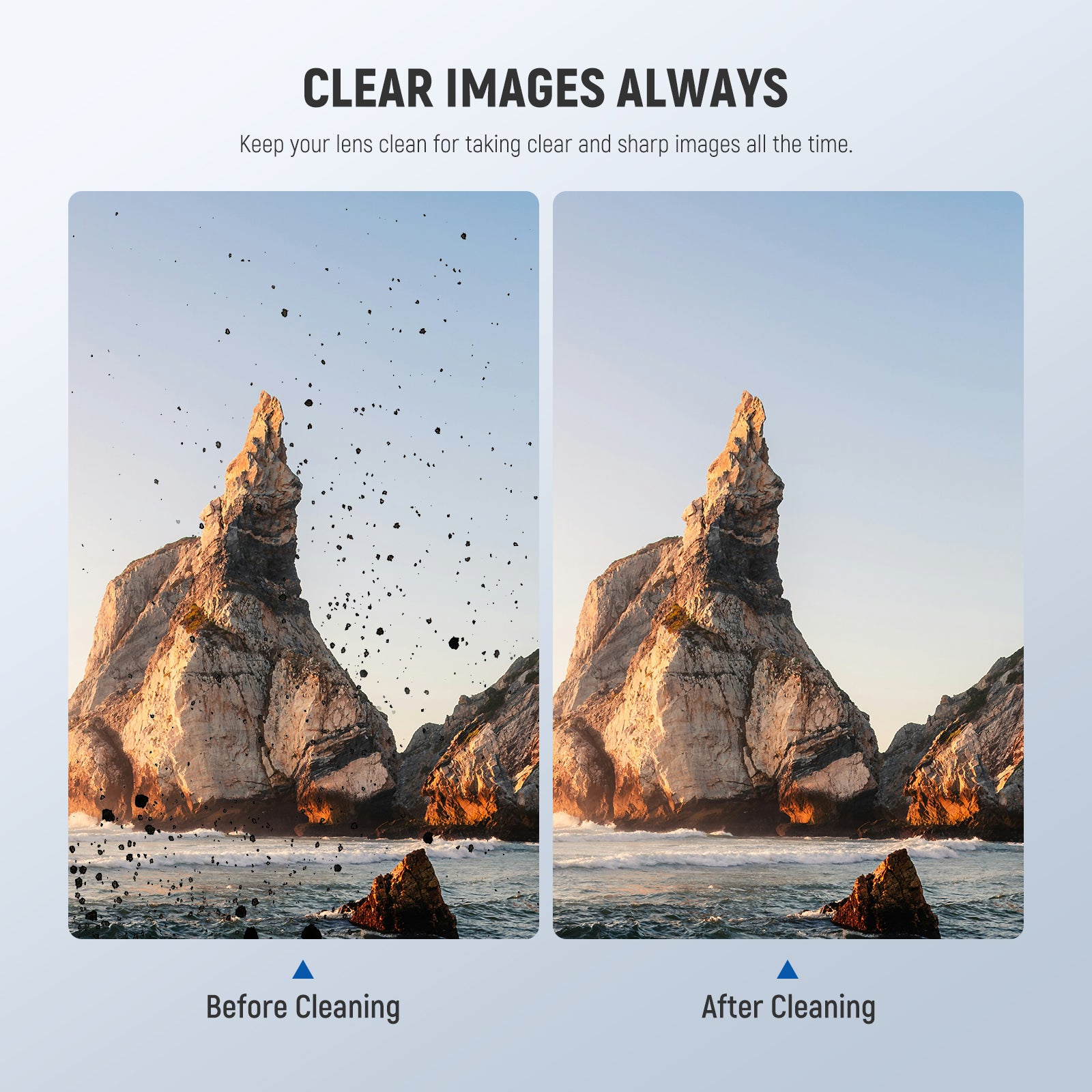 - Double Head Lens Brush Pen- A retractable soft brush that sweeps away dust, and a carbon tip that absorbs oil, fingerprints, and smudges. Ideal for cleaning lenses, camera bodies, keyboards, and other devices