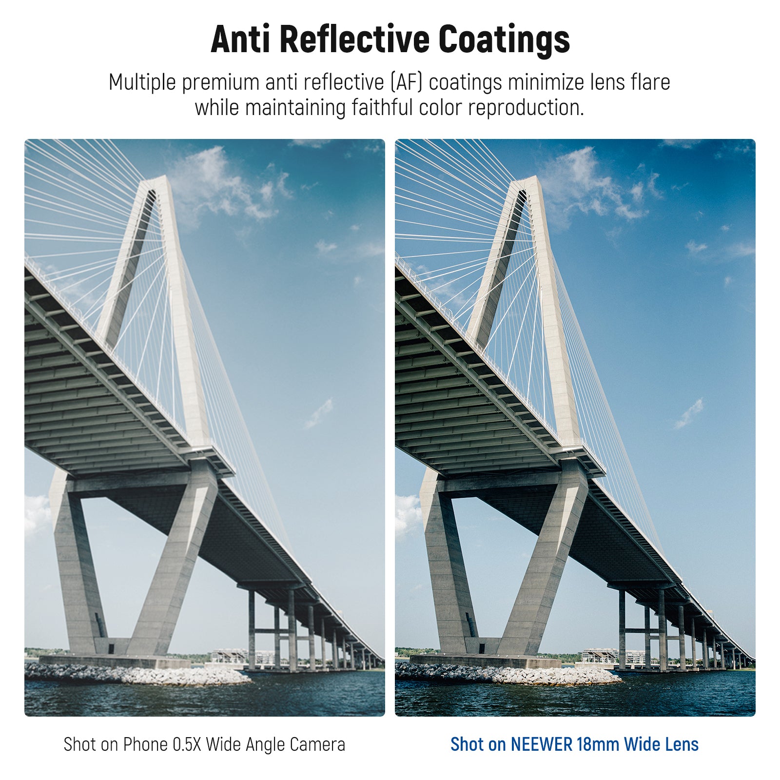 - 18mm Wide Angle Lens- Used on your phone's main camera, this 0.75X 18mm wide angle lens helps you capture clear and sharp photos with a 100° expansive field of view (FOV) and creative edge distortion, perfect for wildlife, natural landscapes, cityscapes, concerts, group portraits, and more