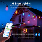 - Dynamic Scenes & DIY Mode- Featuring 50+ preset scenes with Daily Life, Holidays, Emotions, Nature, and continuous updates for more effects, our decorative waterproof outdoor string lights with smart color changing bulbs also support DIY customization via app as back yard balcony accessories, patio essential. Plug in lighting for Christmas, Halloween, Thanksgiving, Easter, birthday, camping tent/RV canopy awning decoration, indoor bedroom party, backyard garden wedding, out side yard market, etc