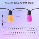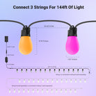 - Two Installation Options- The string lights features both hanging holes and hooks, allowing for quick and easy setup without any professional tools. Easily secure the bulbs through the holes using the included ties to keep them in place without shifting. Note: Up to 3 strings (144ft/45 m) can be connected