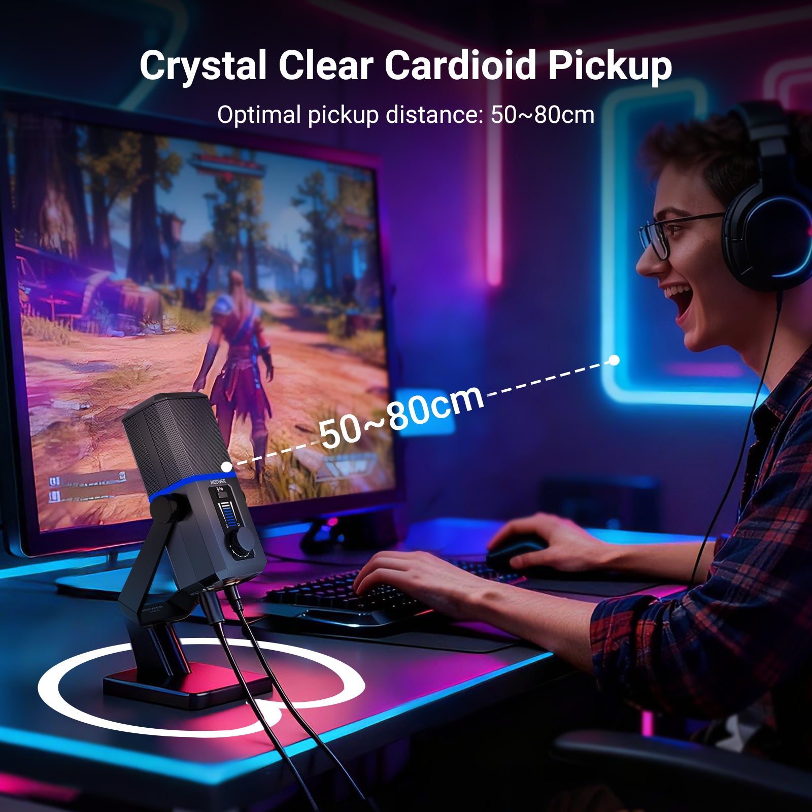 - Crystal Clear Cardioid Pickup- Cardioid polar pattern with -36dB sensitivity, 80dB SNR, and 20Hz–20kHz frequency response. A 48kHz/24-bit sampling rate delivers warm, detailed vocals. 120dB maximum SPL handles loud sound without distortion