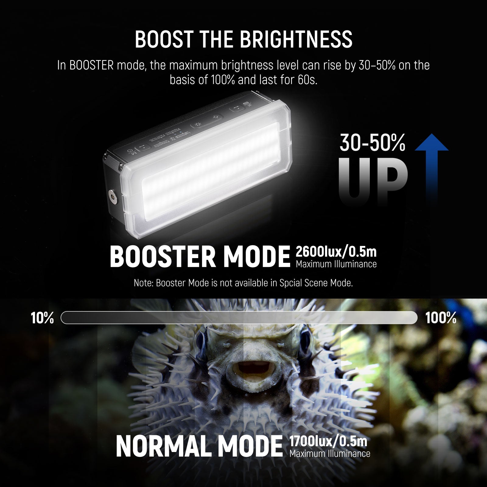 - Go Beyond the Brightest- A 10% - 100% dimming range with 10% increments lets you instantly get a brightness level that suits the ambient condition perfectly. If the 1700lux/0.5m maximum illuminance is still not enough for you, enter the mode "BOOSTER" and get an extra high 2600lux/0.5m output that lasts for the 60s