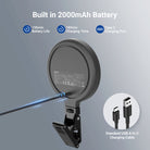 - Built in 2000mAh Battery- The rechargeable small LED circle panel halo ring light lasts up to 155 minutes at full brightness, providing continuous lighting for phone pictures, video recording, podcast, and videography. Convenient recharge via the USB cable