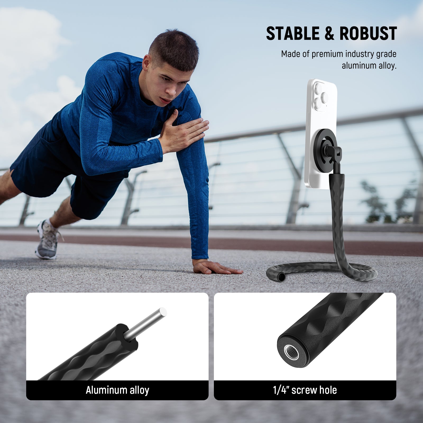 - Sturdy & Stable- The firm flexible phone mount is made of quality aluminum alloy, providing long term service and securely supporting your filming equipment up to 10.6oz (300g) while being highly flexible to bend freely. The anti slip surface enhances grip. Ideal for TikTok live steaming, podcast, YouTube Vlogging, content creation, and video recording